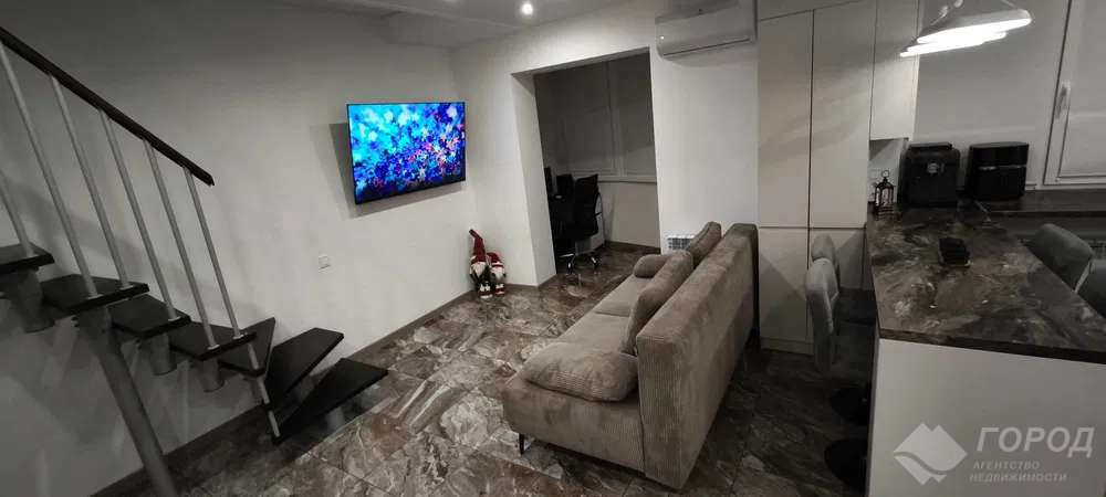 У продажу світла, простора і затишна дворівнева квартира з новим якісним ремонтом і меблями, в тихому центрі міста за адресою провулок Лосевський в ЖК "Лазурний". Загальна площа квартири 82м2. Будинок з індивідуальним газовим опаленням - двоконтурний котел. Сам собі завжди регулюєш температуру для комфорту. Завжди є гаряча вода. Перші власники. Формат квартири: простора і велика квартира з високими стелями і меблями, перший поверх декоративна штукатурка - можна фарбувати просто самому як завгодно, величезна кухня-студія, спальня, дитяча, два балкони, гардероб, містка комора. Два санвузли (на першому поверсі тропічний душ, душова, а на другому велика ванна). Теплі підлоги, два сучасних потужних кондиціонери з wi-fi і можливістю опалення до - 25. Два нових телевізори з діагоналлю 50 і 60. Лічильники: газ, вода, електроенергія. Планування дає можливість перепланувати або доукомплектувати додатково квартиру під себе – місце дозволяє. Сусідів тут не чути – зовсім). На дах можна встановити сонячні панелі або поставити генератор, а при бажанні і зробити зону барбекю)! Сам будинок - фасад утеплений як термос, що робить будинок дуже теплим взимку і прохолодним влітку. Гарне і зручне місце розташування: три станції метро (Центральний ринок у 5 хвилинах ходьби, Історичний музей, Південний вокзал), наземний транспорт 3 хвилини ходьби, супермаркет Рост, Клас, АТБ, базар, центр міста, ТЦ Нікольський, парки, школи, дитячі садки, лікарні та інше - все в пішій доступності. ЖК закритого типу з охороною, відеоспостереженням, в'їзд і виїзд через шлагбаум. На території комплексу: охоронювана парковка, розташований дитячий майданчик, спорт майданчик, поле для міні футболу, столи для пінпонгу, завжди доглянута прибудинкова та придомову території. Є можливість виходу на прогулянкову зону набережної. У комплекті - гараж з мінімальною довгостроковою орендою. Показ можливий в будь-який час.