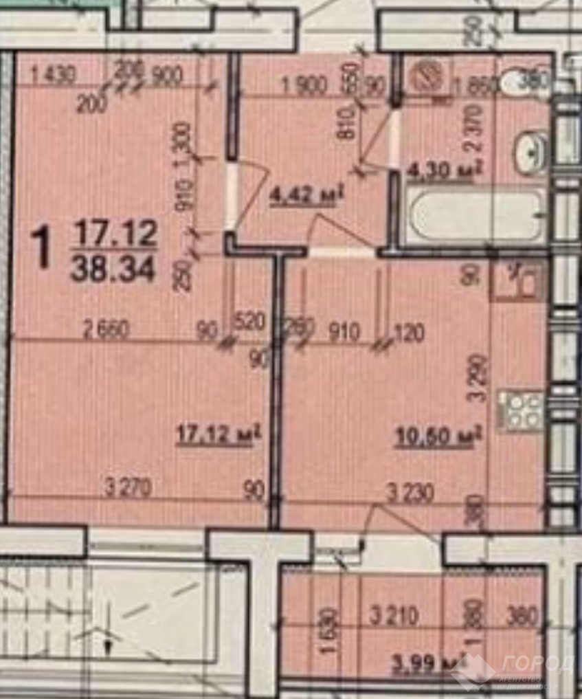 Продам 1 кімнатну квартиру по вулиці Миру. 1 поверх з 9, площа 38,34 кв.м. Будівельний стан.