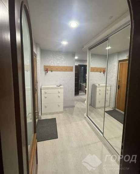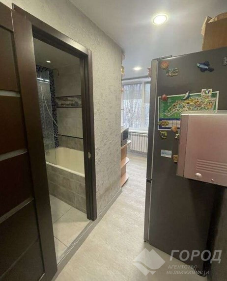 Продається двокімнатна квартира площею 44,5 кв. м на проспекті Перемоги, в тихому місці на 7 поверсі дев'ятиповерхівки. Район спокійний, поруч є все: школа, садок, магазин АТБ, оновлена алея в парку, та й повітря чисте завдяки лісу. Біля будинку відмінний асфальт - і на тротуарі, і на парковці, і на під'їзді до проспекту. У під'їзді чисто, вікна пластикові. Сусіди навколо - пенсіонери, люди спокійні. У квартирі труби повністю замінили на пластикові, чеські (і холодну, і гарячу воду, і каналізацію), причому і сусідам зверху теж все зробили за свій рахунок. У кімнатах і ванній стоять хороші, сучасні дерев'яні двері. У кімнатах на підлозі паркет, а в коридорі і на кухні – вініл, французький. Санвузол класний: стоїть інсталяція, унітаз, фільтри на холодну воду. Ще й проводку замінили. У коридорі і на кухні декоративна штукатурка карта світу і натяжна стеля з підсвічуванням. Кухня з технікою, є посудомийна машина. Окрема комора велика, там гардероб, бойлер і пральна машина. Балкон засклений, в залі кондиціонер. Меблі хороші.