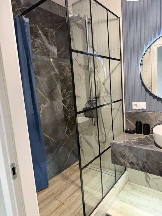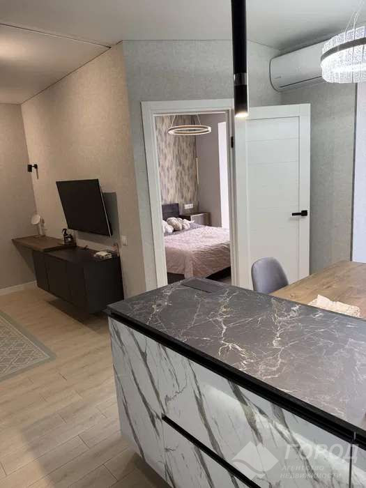 Оренда 1-кімнатної квартири в ЖК «Лазурний» поблизу метро Центральний Ринок. Кухня-вітальня + окрема спальня, загальна площа - 48,2 м². Квартира повністю укомплектована є всі необхідні меблі та техніка, все, що бачите на фото, залишається для користування. Є окрема гардеробна для зберігання речей. Автономне опалення (газова колонка), тепла підлога, у кухні-вітальні зроблена шумоізоляція. Квартира в новому ЖК, на 8 поверсі з 10. До метро можна дійти пішки, хороша локація. Без тварин і дітей.