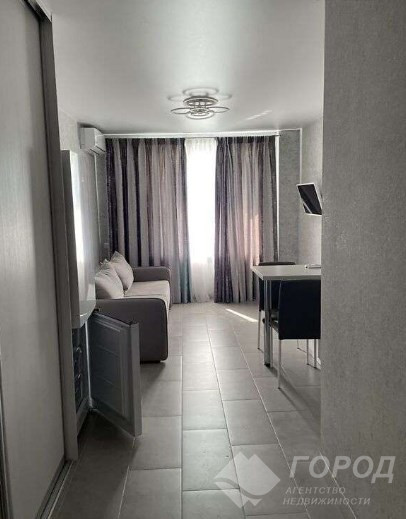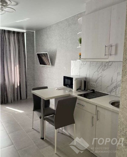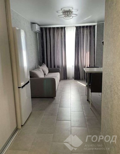 Довгострокова оренда 1-кімнатної квартири на вул. Авіахімічна. Кухня-студія, є пральна машина, телевізор, кондиціонер, меблі, посуд. Комунальні послуги оплачуються за квитанцією. Біля будинку є парковка перед під'їздом.